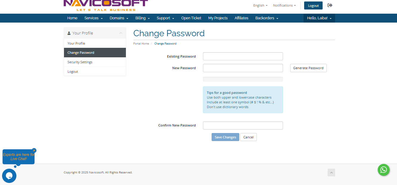 - 4.Click on the Save Changes button. Your password has been changed now.