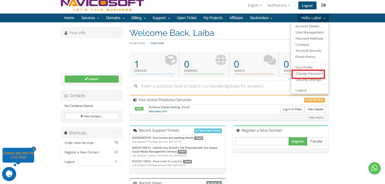 In order to change clientarea password, first you will need to login to clientarea. If you do not know how to log in then refer to these instructions. Once you are logged in perform the following steps:
