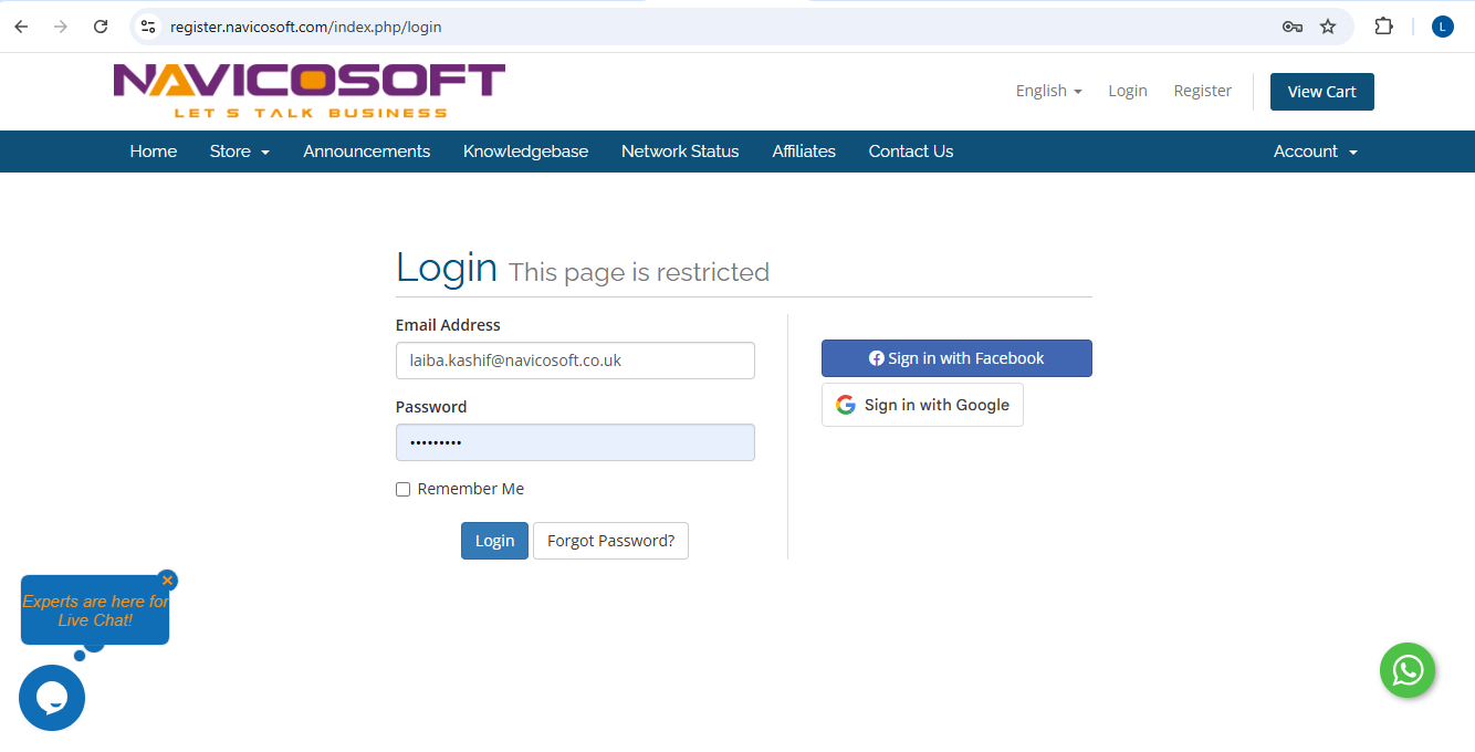 Client area is useful for viewing your invoices, making payments, viewing your hosting account information, and supporting tickets. To login into your client area, you need the following two details: