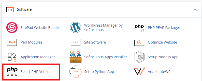 Use your hosting account credentials to log into the cPanel dashboard - Locate the “Select PHP Version” tool