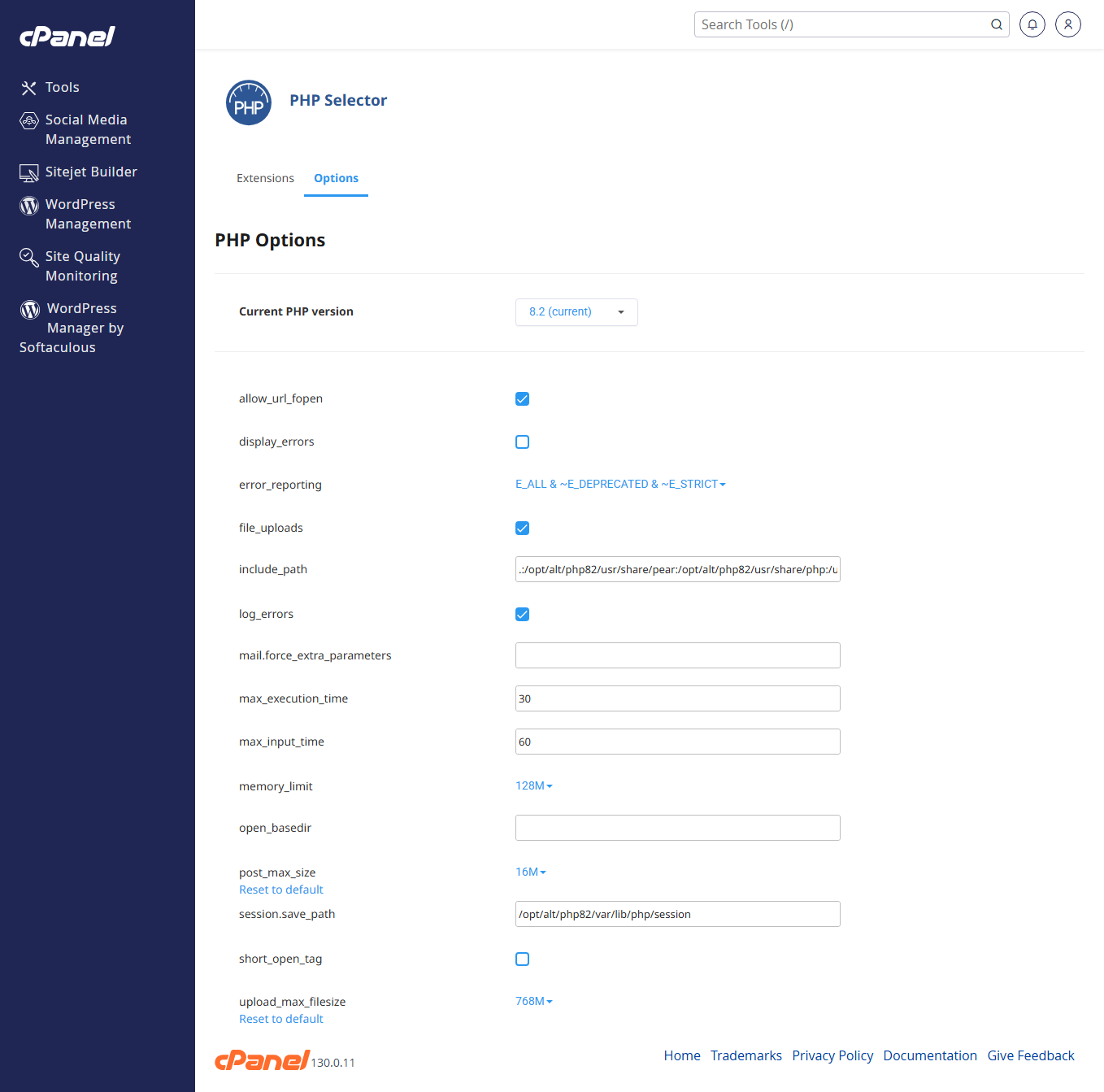 - There may also be a tab or link for PHP Options or Switch to PHP Options. Here, you can tweak things like