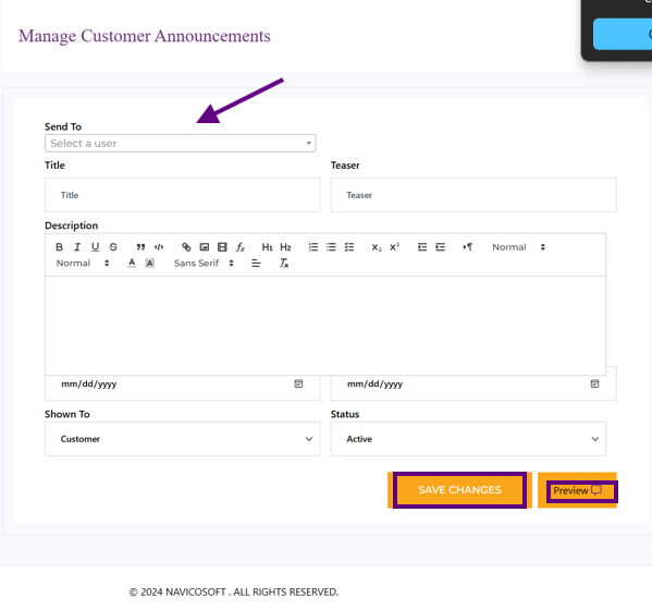 Customer announcements are a powerful way to share updates. Follow the steps below to manage them effectively:
