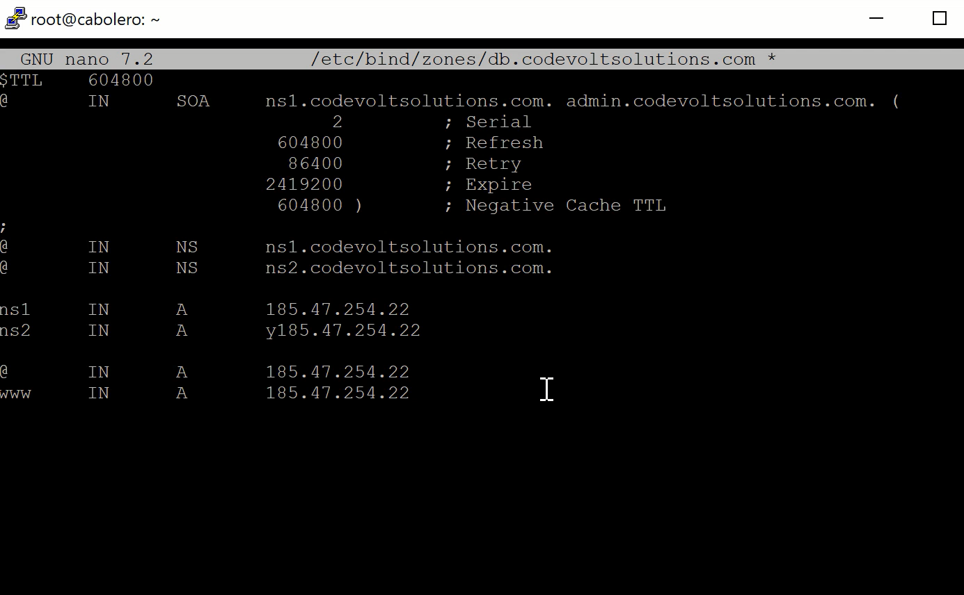 sudo nano /etc/bind/zones/db.yourdomain.com