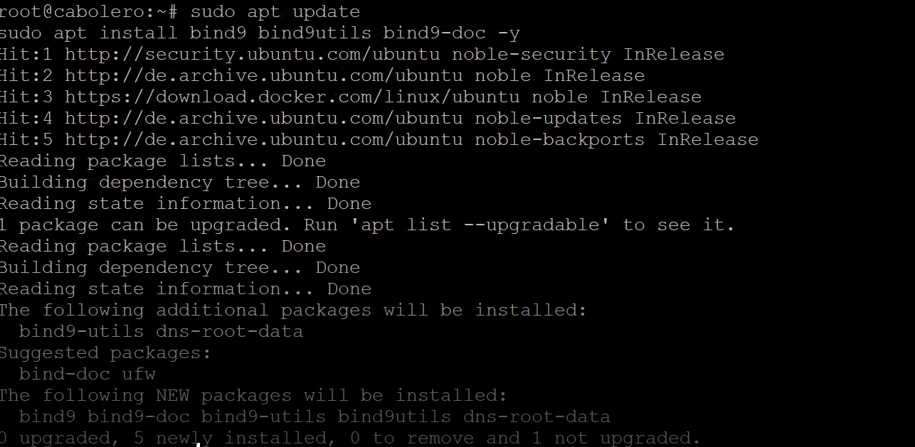 sudo apt update && sudo apt install bind9 bind9utils bind9-doc -y