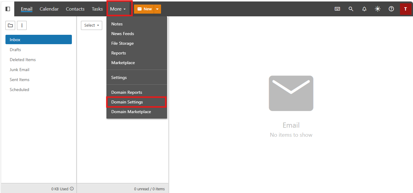1. Log in to the web interface as an administrator via the URL: webmail.yourdomainname.com, using your email address and password.