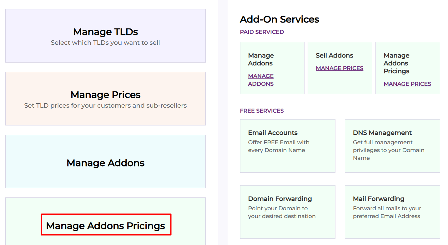 Managing addon pricing is an important part of running a successful domain reseller business. Addons like domain privacy or DNS management add value for your clients and can increase your profits. Here's a simple guide to help you manage addon pricing effectively: